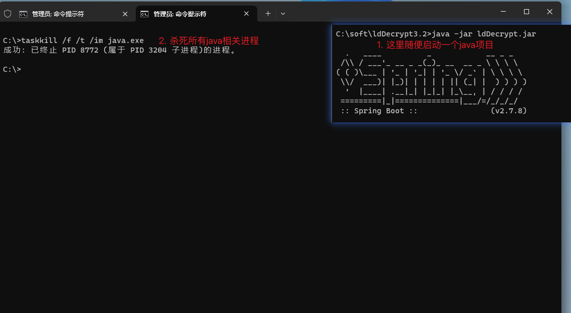 taskkill /f /t /im java.exe